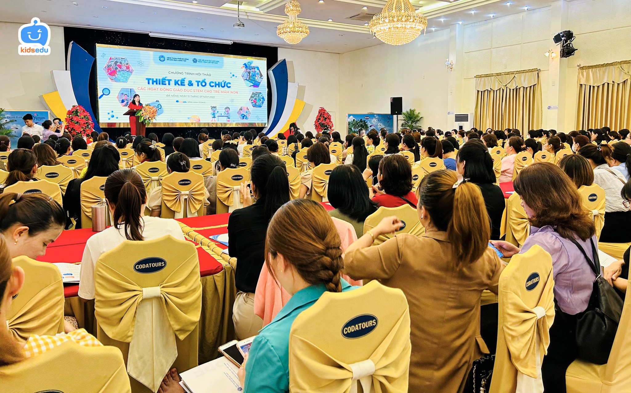 Hội thảo triển khai chương trình KidsEdu STEM tại Thành phố Đà Nẵng với sự tham gia của 300 giáo viên, đội ngũ quản lý từ các trường mầm non công lập và ngoài công lập ngày 15/7/2023 được tổ chức dưới sự phối hợp của Công ty Cổ phần Giáo dục KidsEdu và Sở GD&ĐT Thành phố Đà Nẵng. Với mục tiêu giới thiệu và tăng cường nhận thức về STEM cũng như vai trò của STEM trong bối cảnh chuyển đổi số sâu rộng ngành giáo dục Việt Nam, Hội thảo đã mang lại nhiều kiến thức bổ ích và động lực cho đội ngũ quản lý và giáo viên tham gia chương trình.
