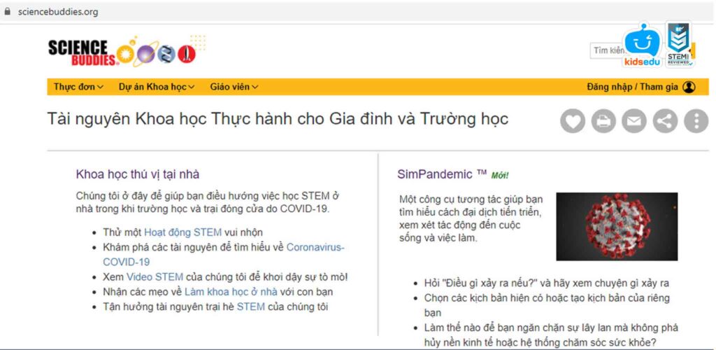 Science Buddies là một website hoạt động STEM cung cấp nguồn tài nguyên “khổng lồ” lĩnh vực Khoa học.