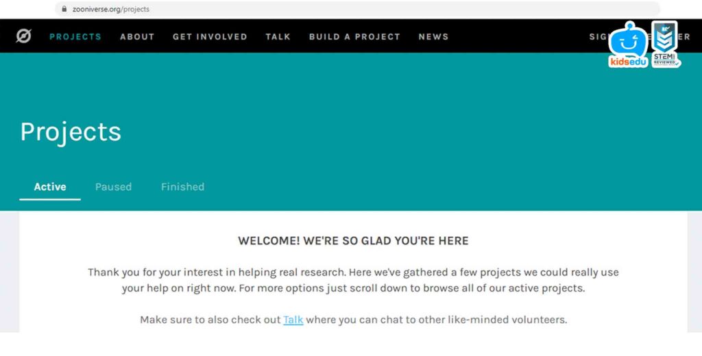 Web cung cấp các dự án nghiên cứu thực tế về các lĩnh vực thời tiết, y học, tự nhiên, vật lý… và cho phép trẻ tham gia vào dự án.