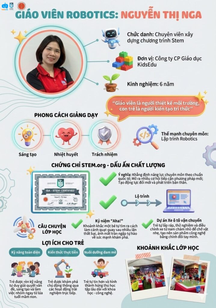 “Giáo viên là người thiết kế môi trường, con trẻ là người kiến tạo tri thức.” Đó không chỉ là quan điểm giảng dạy mà còn là kim chỉ nam xuyên suốt hành trình hơn 6 năm gắn bó với giáo dục STEM của cô Nguyễn Thị Nga. Trong mỗi tiết học STEM – Robotics, […]