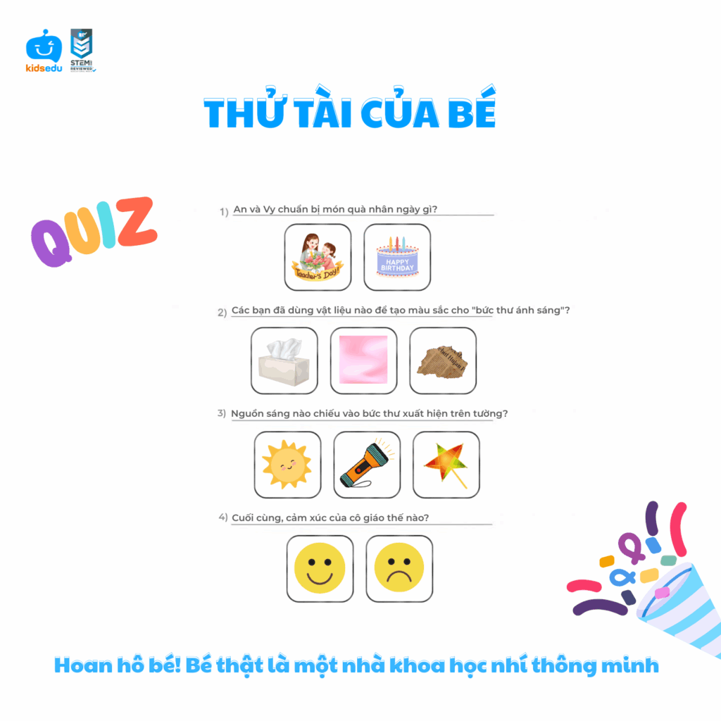 Nhân dịp Ngày Nhà giáo Việt Nam 20/11, KidsEdu giới thiệu đến các cô giáo và học sinh mầm non một hoạt động STEM đặc biệt: “Bức thư ánh sáng” – món quà nhỏ nhưng chứa đựng nhiều tình cảm và sự sáng tạo của các bé dành cho thầy cô.